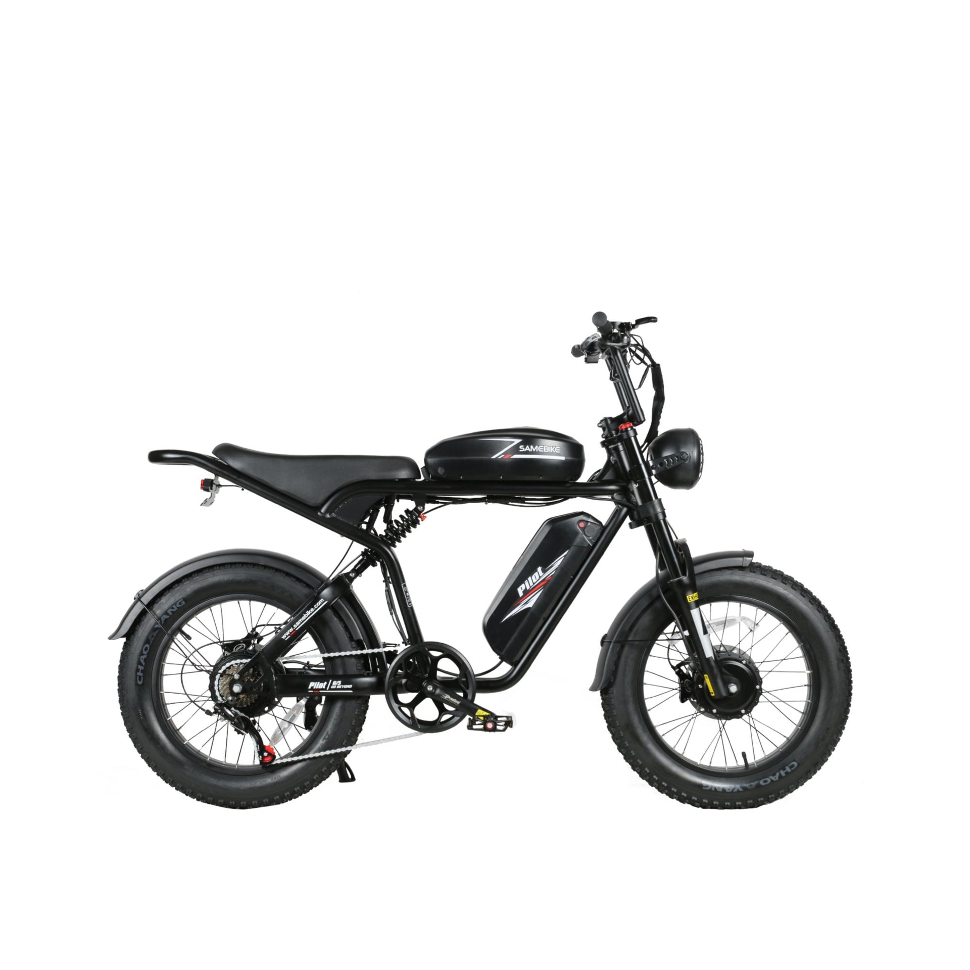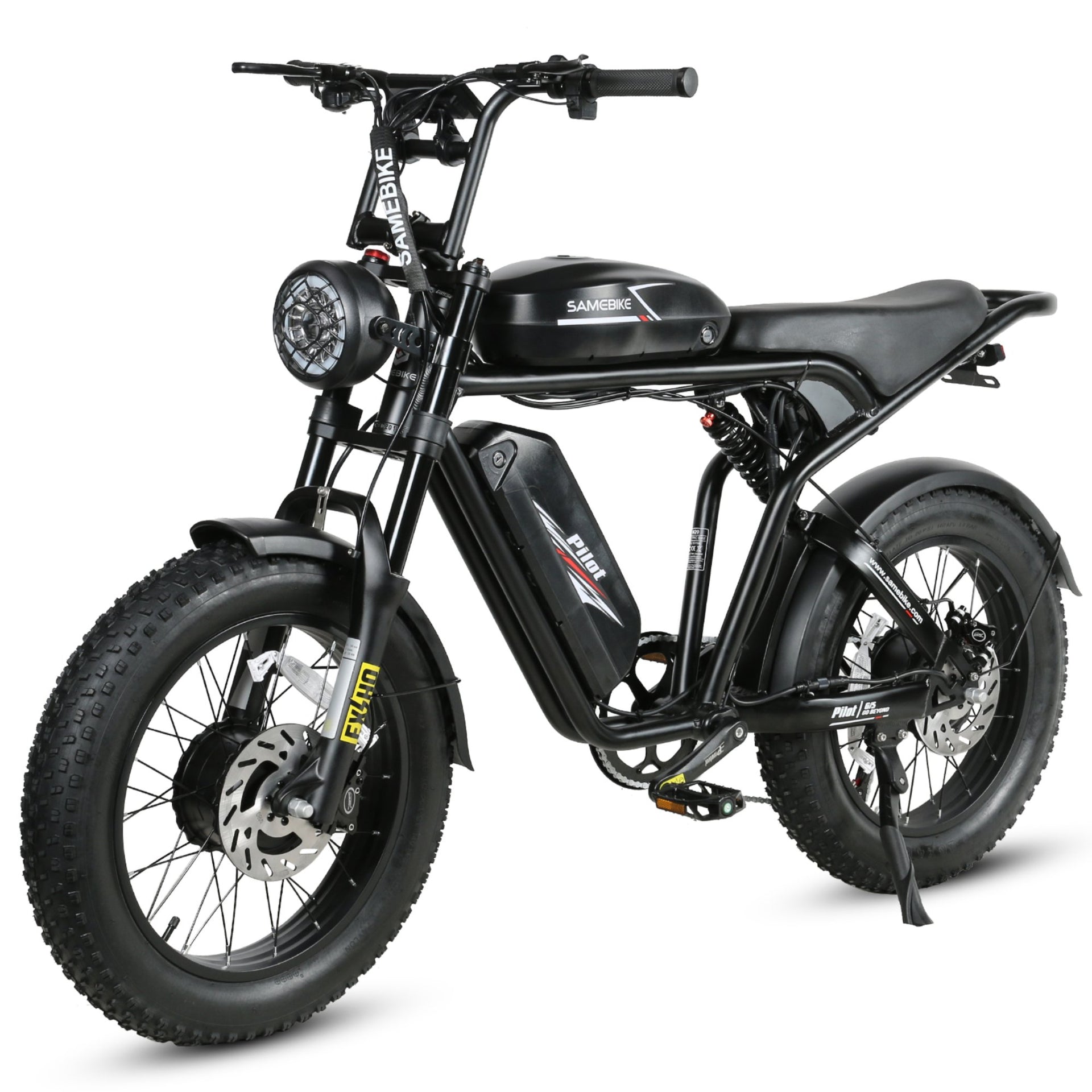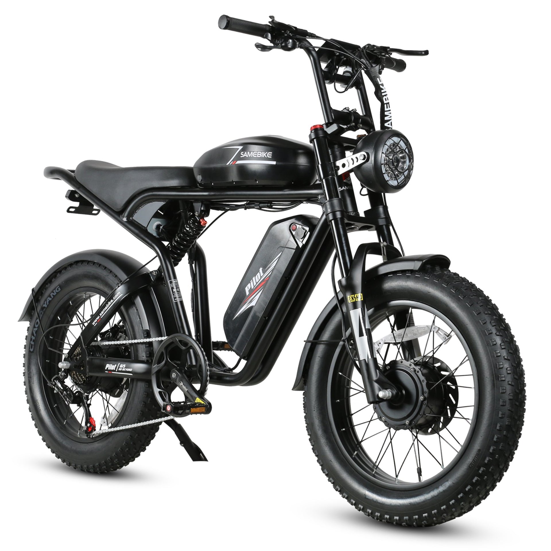 For a dirt ebike, riders always expect quick and smooth acceleration. Samebike Pilot SR's dual 1,000W geared hub motors with 80Nm instant torque will provide a thrilling and responsive ride. Working with the 20" * 4.0" fat knobby tires, the Pilot can be ridden on a variety of terrain, from dirt tracks to rocky terrain to steep hills, providing a versatile and adaptable ride.