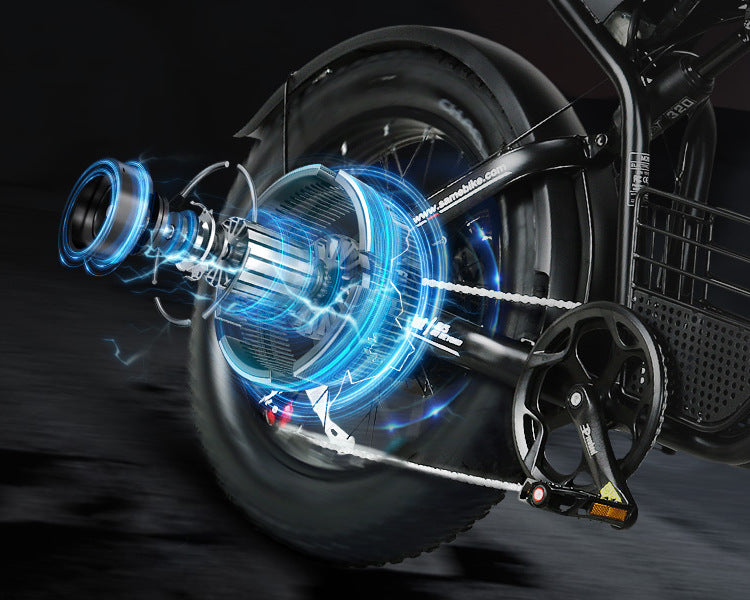 For a dirt ebike, riders always expect quick and smooth acceleration. Samebike Pilot EX's 1200W geared hub motor with 90Nm instant torque will provide a thrilling and responsive ride. Working with the 20"*4.0" fat knobby tires, the Pilot can be ridden on a variety of terrain, from dirt tracks to rocky terrain to steep hills, providing a versatile and adaptable ride.