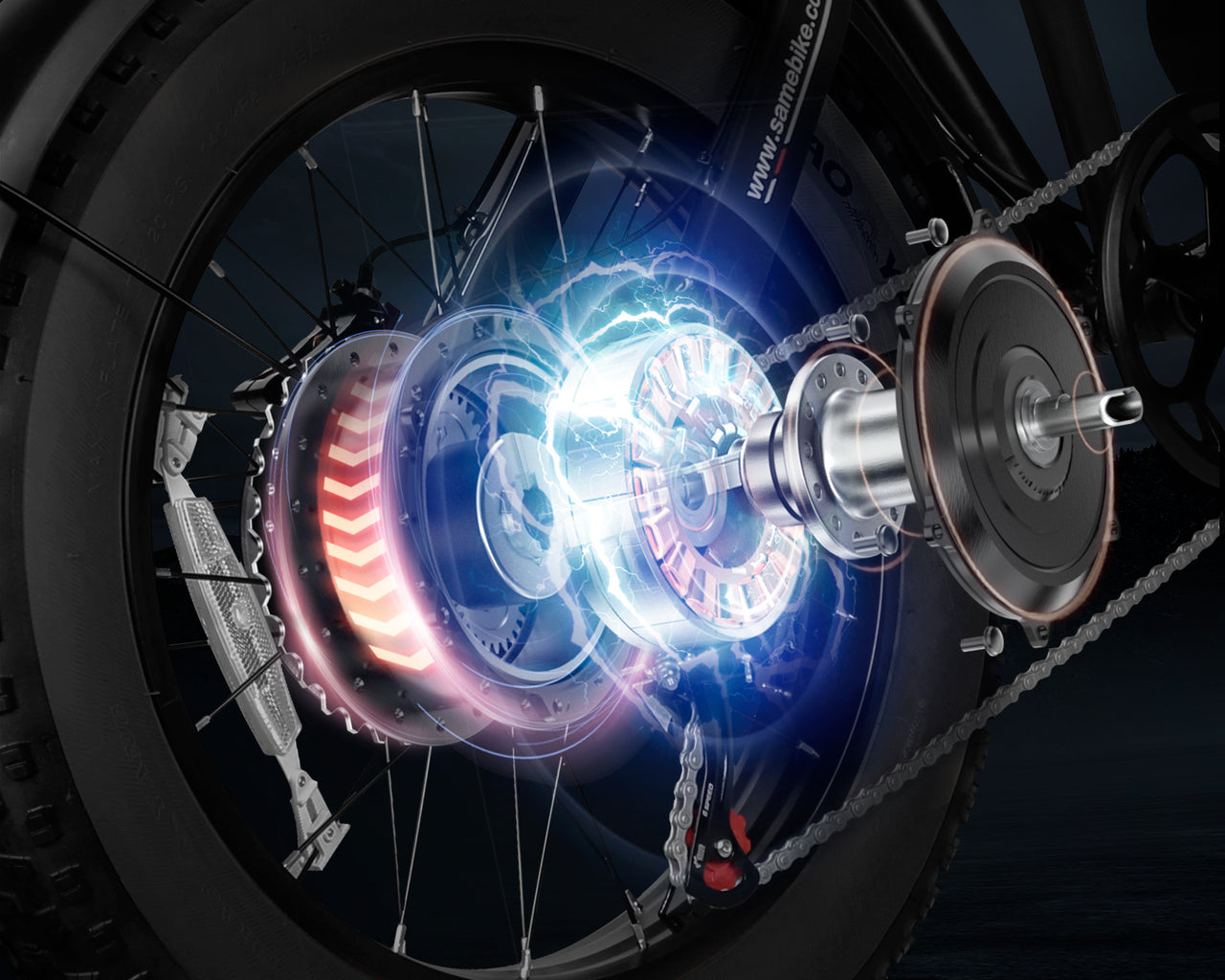 Using hydraulic disc brakes with front and rear 180mm motorcycle rotors, Samebike Pilot adopted customized semi-metal brake pads that provide strong braking force and can quickly stop under a load of 330 pounds to respond to emergency situations