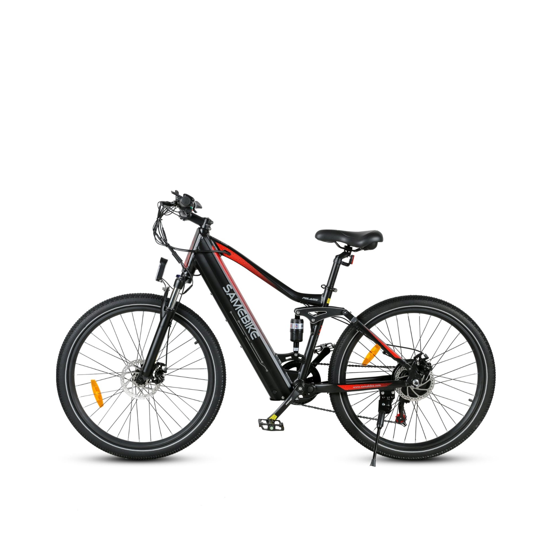 How to balance the price and performance of a "first" electric bike? At Samebike, we have featured the 750W motor, hydraulic brake, and full suspension to the compact-styled frame, to reduce its price to under $1,000. Pick up the Samebike Polaris as your first high-performance ebike at an affordable price. Join the new cycling group for commute, workout, and adventure now!