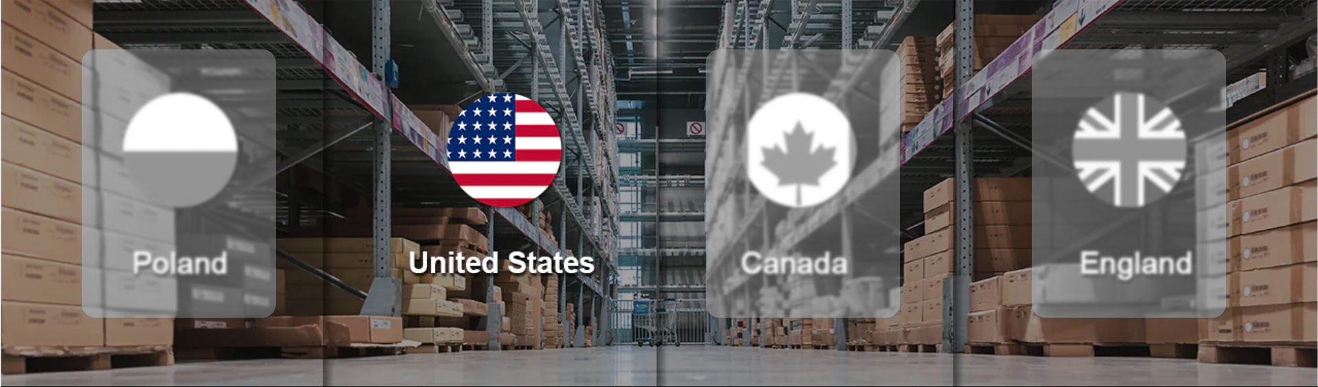 Warehouses in Chino and Los Angeles, California. Free Shipping and Duty-Free, 6-9 days delivery time.