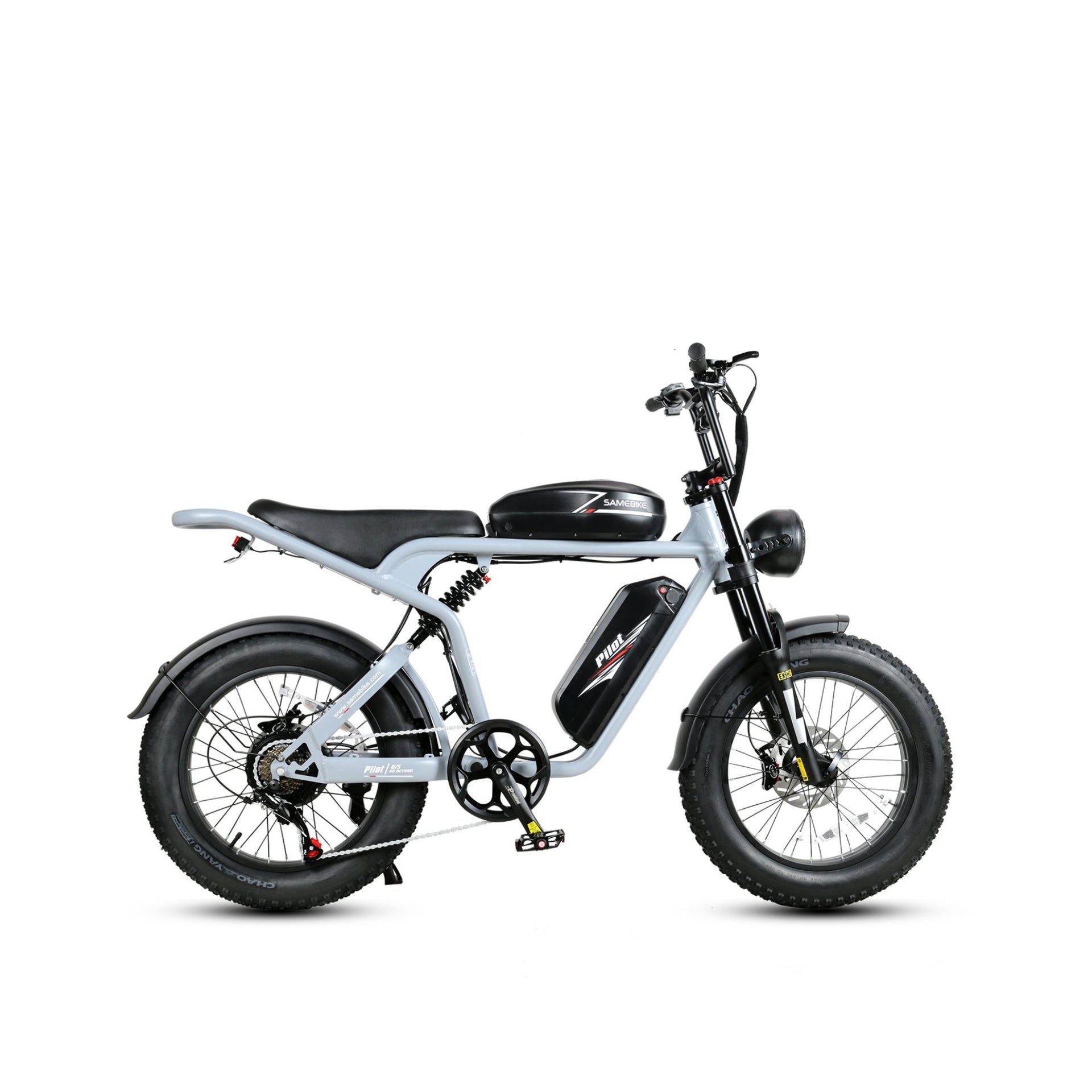 This is the range-extended (EX) version of the Samebike Pilot electric dirt bike has the same design concept but also have some different. As you can see, the double range with dual batteries, faster speed with the 1,200W motor in lighter-weighted frame, and more fun waiting for your exploring.