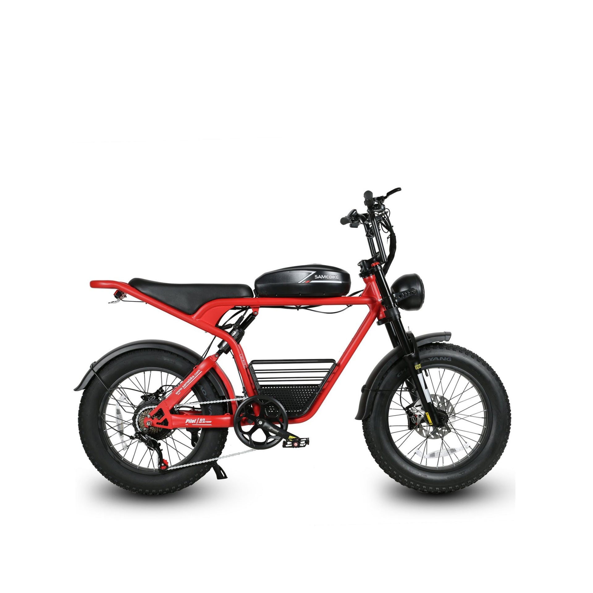 For a dirt ebike, riders always expect quick and smooth acceleration. Samebike Pilot's 1,200W geared hub motor with 80Nm instant torque will provide a thrilling and responsive ride. Working with the 20"*4.0" fat knobby tires, the Pilot can be ridden on a variety of terrain, from dirt tracks to rocky terrain to steep hills, providing a versatile and adaptable ride.