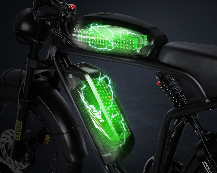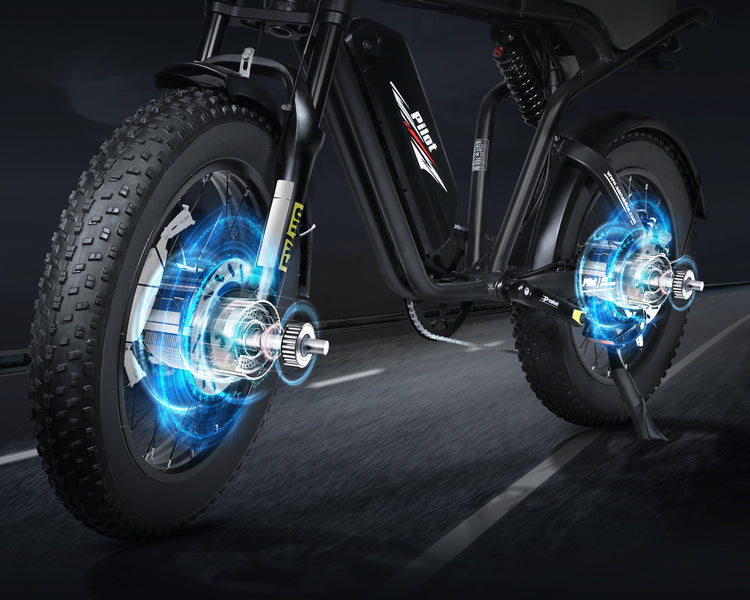 For a dirt ebike, riders always expect quick and smooth acceleration. Samebike Pilot SR's dual 1,000W geared hub motors with 80Nm instant torque will provide a thrilling and responsive ride. Working with the 20" * 4.0" fat knobby tires, the Pilot can be ridden on a variety of terrain, from dirt tracks to rocky terrain to steep hills, providing a versatile and adaptable ride.
