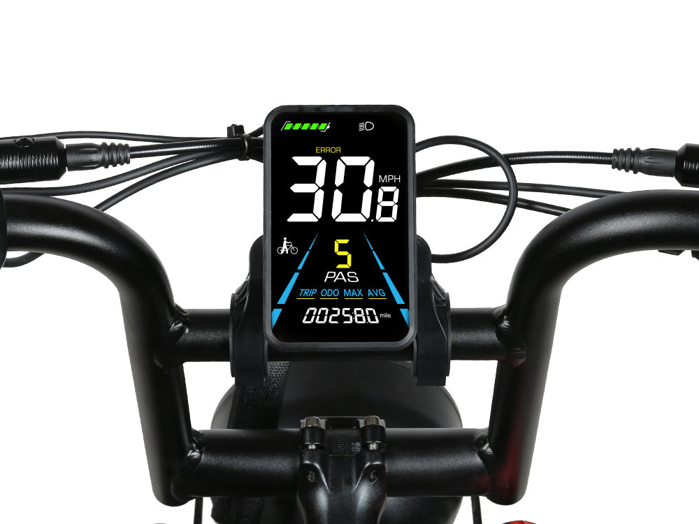 A functional computer/ instrument shows the riding information (including speed, miles, battery, gears,) and bike status (such as brake/ walk-mode/ headlight,) on the 4.2" colored LCD screen. The 5V 1A USB-A port integrated into the keyboard can charge your phone when the display is on. And the new display supports a login password, you can still ride the bike even if the key was lost.