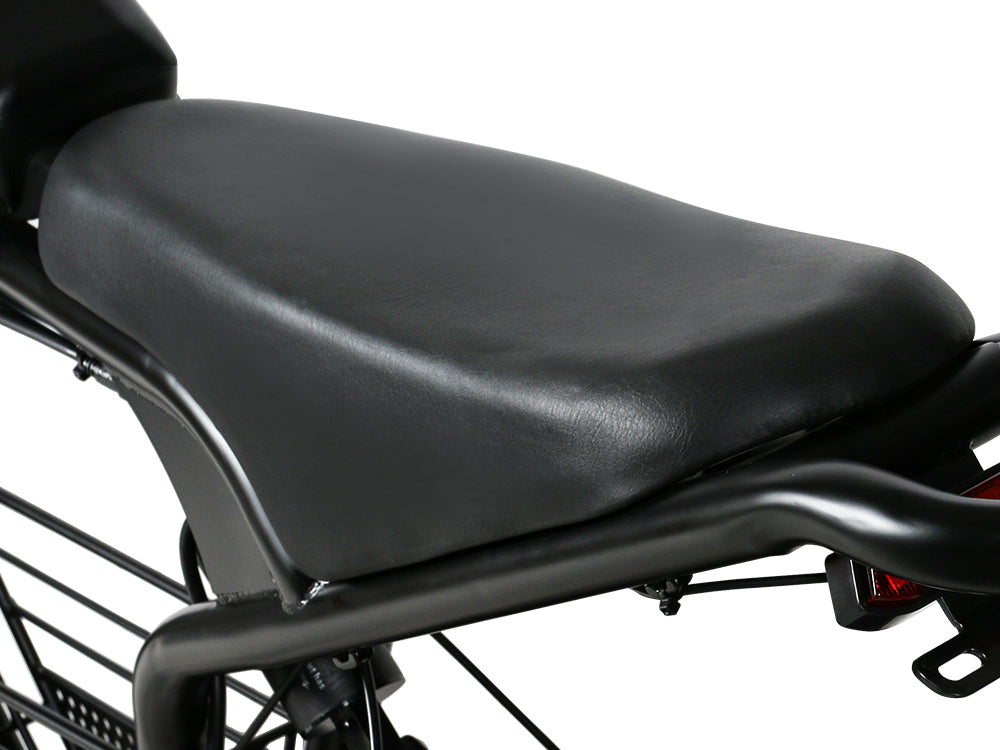 The extended leather seats in black or brown allows carrying one passenger when necessary. High elastic filling sponge can provide a comfortable riding experience.